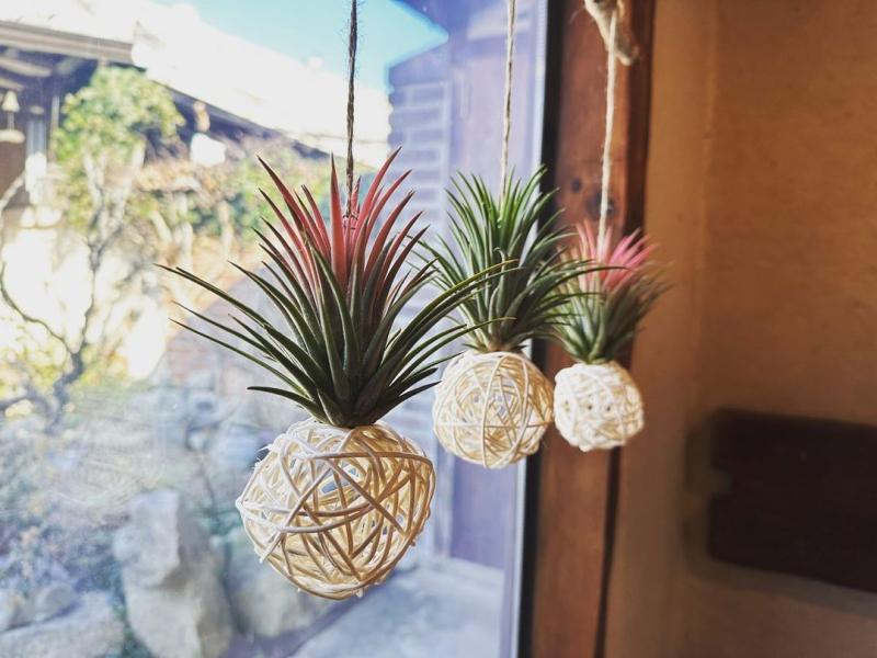 사진의 식물은 틸란드시아 이오난사라고 합니다. 생김새처럼 정말 파인애플의 친척이라는데, 창문 앞에 달아주니 주변이 한층 화사해진 것 같아요.