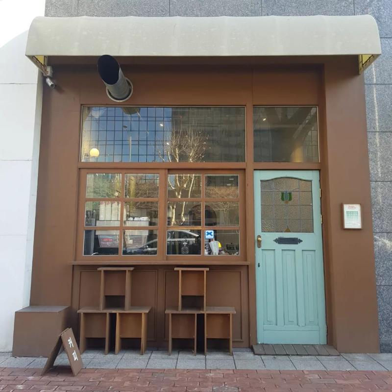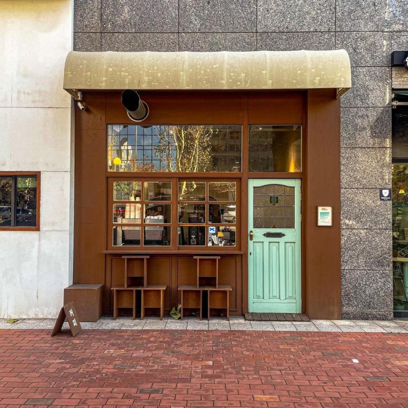 건물1층에 위치한 브라운톤의 외관과 민트색 으로 포인트를 살린 문이 동화속에서나 보일듯한 외관을 풍긴다.