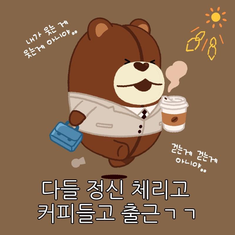 잠콩이 커피콩캐릭터 출근룩 왼손커피 연휴끝 웃는게웃는게아니야 걷는게걷는게아니야