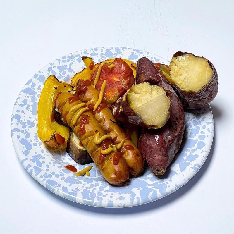 냉털용 구운 야채 & 소시지 한꺼번에 에프굽 :)