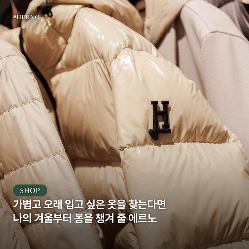 오래 입고 싶은 무겁지 않은 옷을 원한다면 한번쯤 위시리스트에 올려보았을 에르노. 사람들이 입을 수 있는 두 번째 스킨을 구상하여 옷을 제작하며, 오랜 연구와 첨단 기술에 대한 투자를 통해 지속적인 개선과 끊임없는 변화를 믿는 에르노를 현대백화점 목동점에서 경험해보세요!