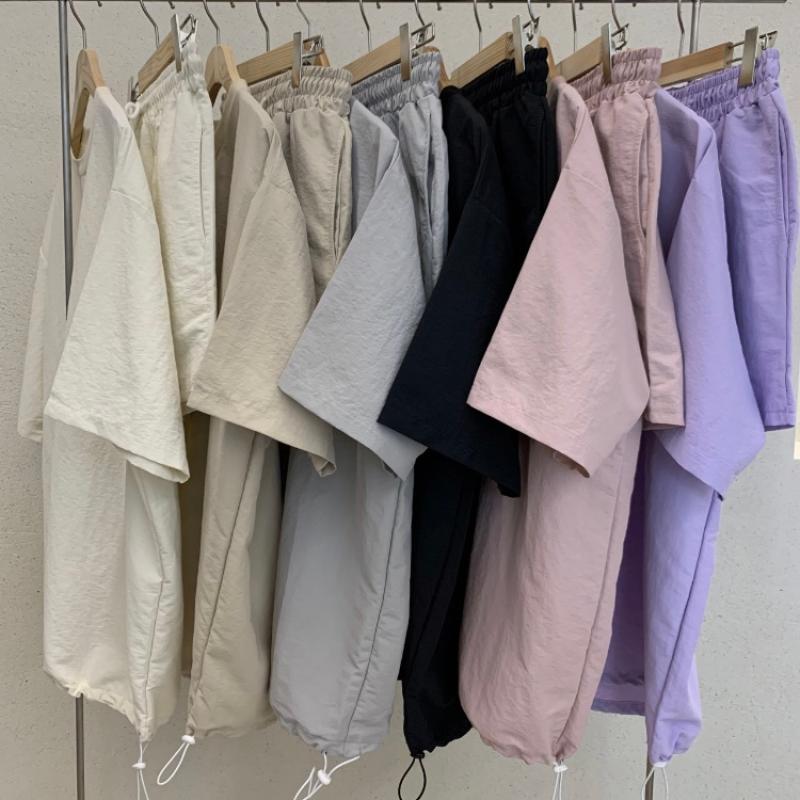 얇고 가벼운 바스락소재의 반바지 셋업‼️