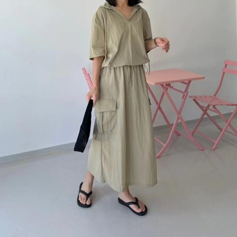 바스락 후드 카고 스커트 세트♡