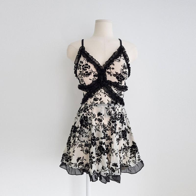 고급스럽고 로맨틱한 디자인의 플라워 꽃나염 시스루 모노키니 + 스커트 세트로 나온 투피스 수영복! 두가지 느낌으로 연출이 가능한 스윔웨어랍니다 ^-^ 허벅지나 힙을 커버하고 싶으신 분들은 스커트와 같이 착용해주시면 체형커버가 된답니당~ 패턴이나 프릴 디테일이 너무 러블리하고 여성스러워서 눈길을 사로 잡으실거예요 ^^ 전체 스킨 컬러 바탕에 블랙 플라워 배색의 시스루 레이스 디자인으로 너무 여리여리하답니당~ 정말 소장가치 있는 제품이라 적극 추천드려요~! 44-66까지, C컵이신 분들까지 이쁘게 맞으세요~♥
