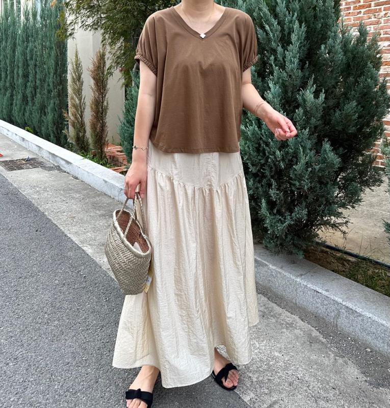 롱치마 롱스커트 밴딩치마 밴딩스커트 블라우스 블라우스코디 여름옷 데일리 데일리룩 오오티디 77사이즈
