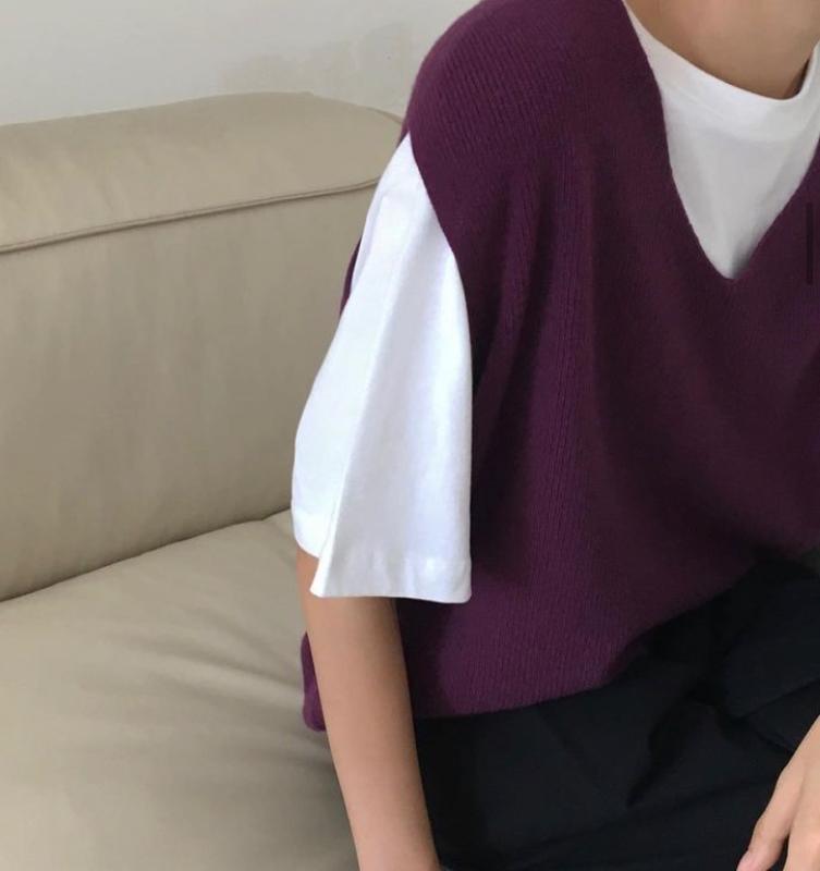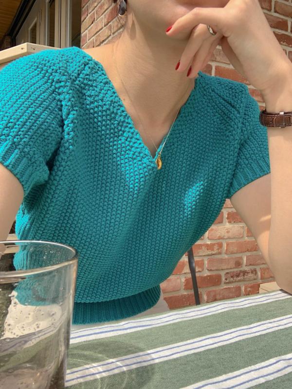 시그니처 크런키 니트 브이넥 여름 와플 반팔
