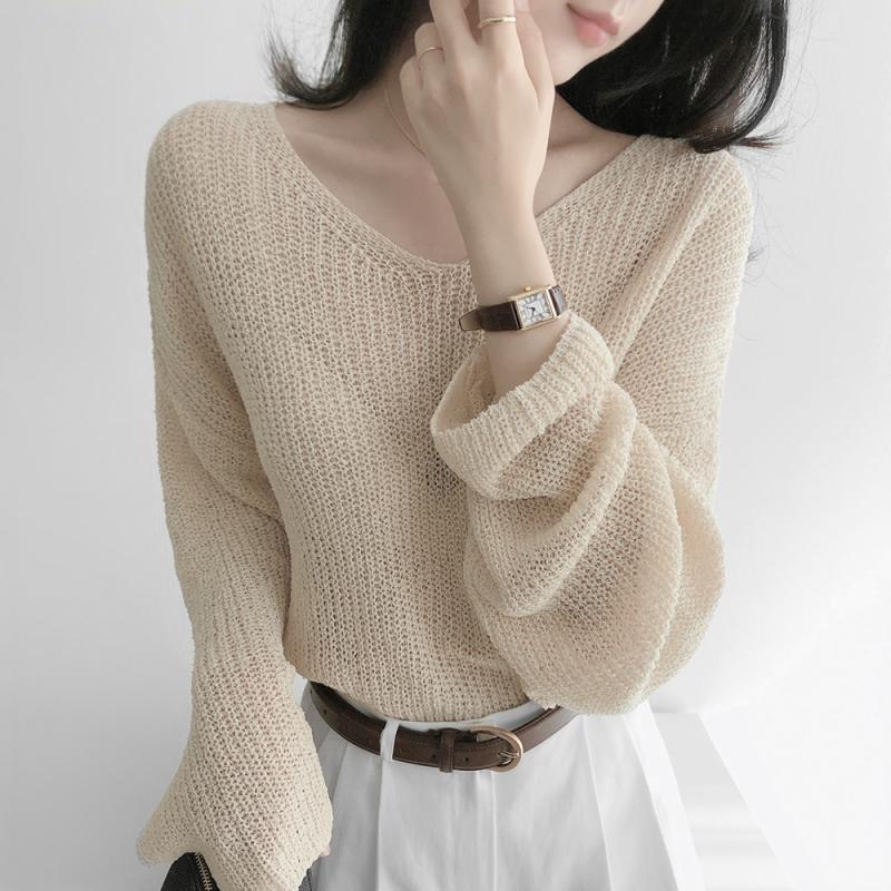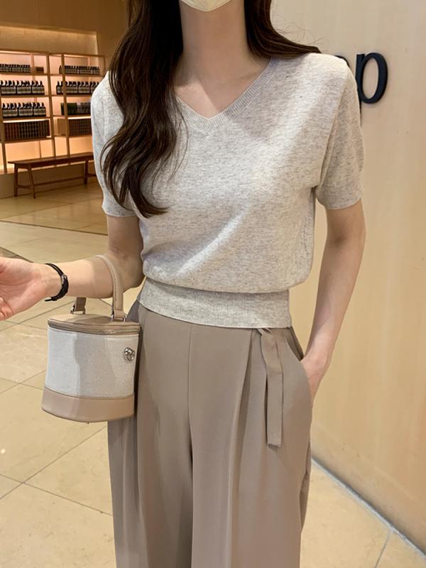 로잔 여름 뱀부 브이넥 반팔 니트