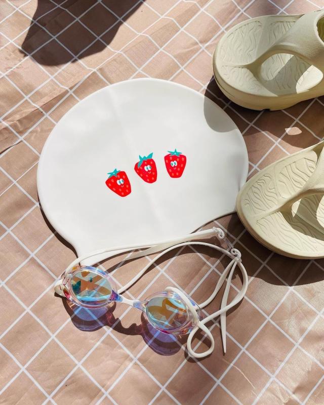 스윔볼 딸기수모는 제가 가지고 있는 수영복이랑 코디가 잘되는것 같아서 즐겨쓰고 있는것 같아요.