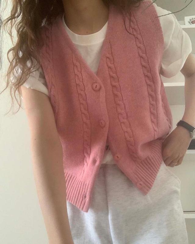 봄신상 봄코디 핑크 꽈배기조끼