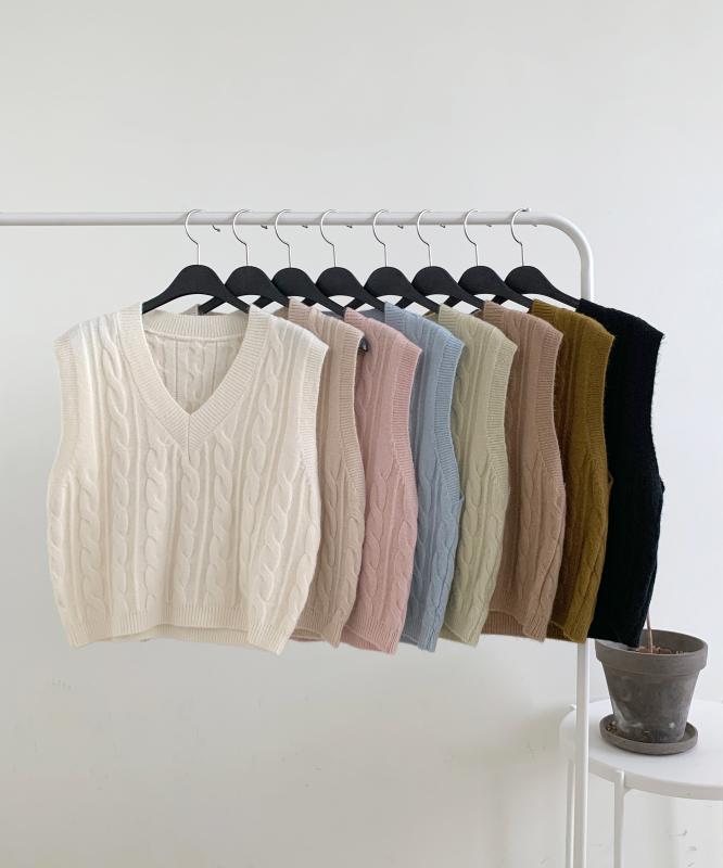 꽈배기 짜임에 브이넥 니트 베스트