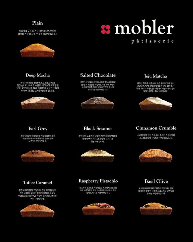 항상 좋은 재료들을 선별하여 다양한 종류를 구성하는 휘낭시에를 모블러에서 만나보시기 바랍니다 :-)
