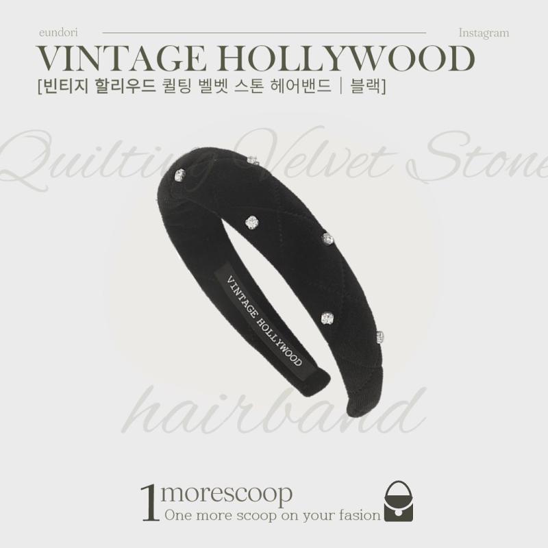 🎀 [빈티지 할리우드 퀼팅 벨벳 스톤 헤어밴드 | 블랙]