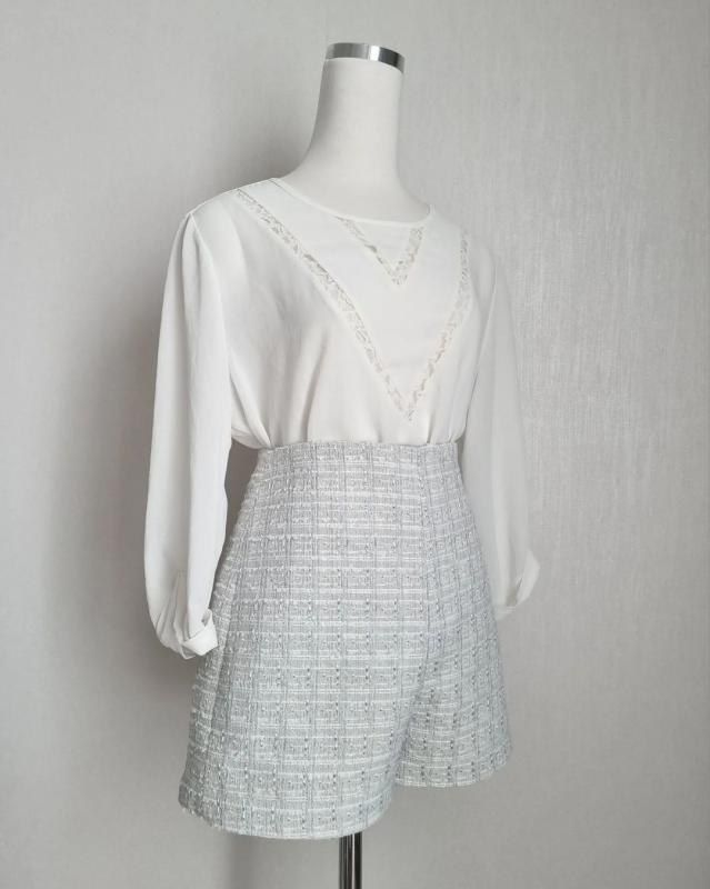 하이웨스트 트위드반바지🩵