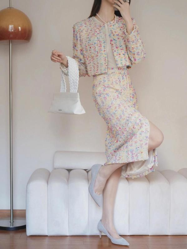 크롭해서 다리도 길어보이고 트위드 재질이라 고급스럽고