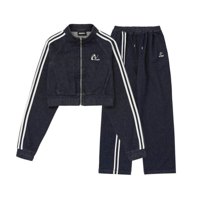 널디 우먼스 데님 크롭 트랙 탑 세트