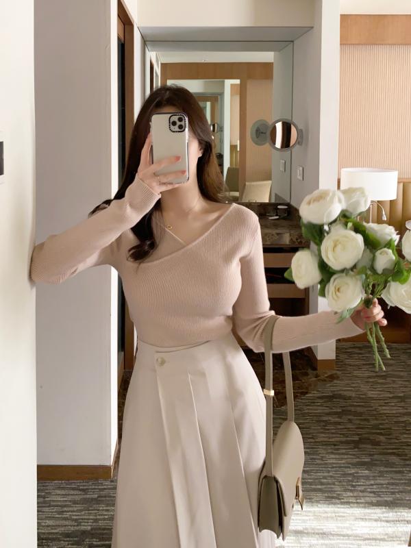 보들 캐시미어 브이넥 봄 여성 니트 티