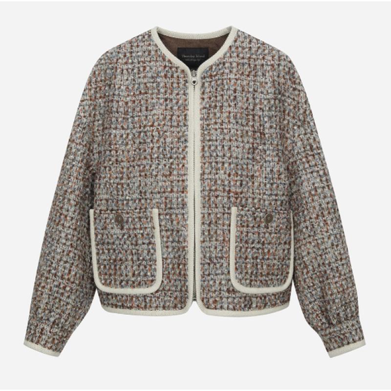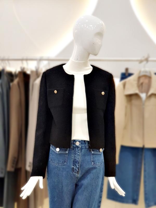 클래식한 세련미가 물씬 풍기는 집업 니트 자켓입니다.