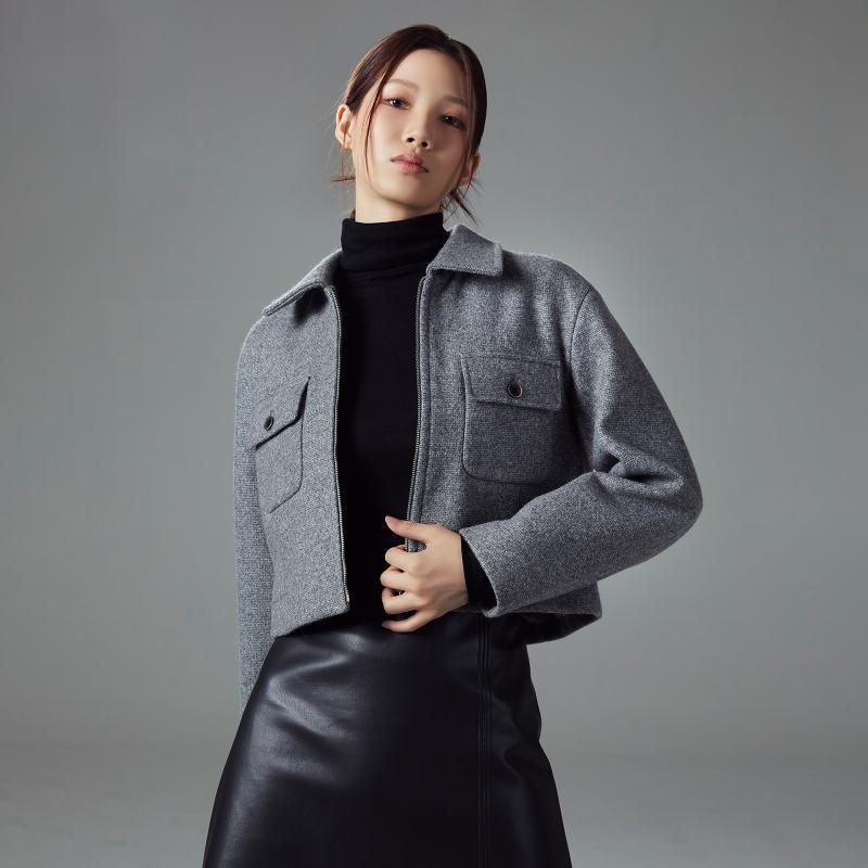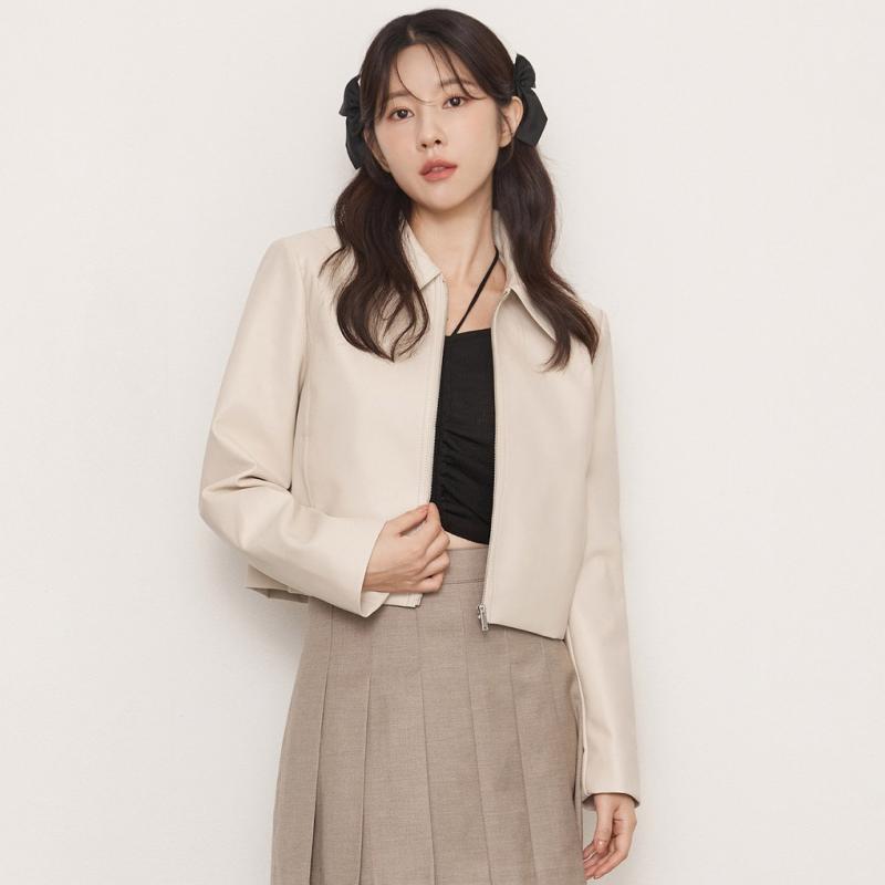 깔끔한 카라넥에 집업디자인으로 깔끔하면서도 트렌디한 무드가 돋보이는 레더자켓이랍니다 :)