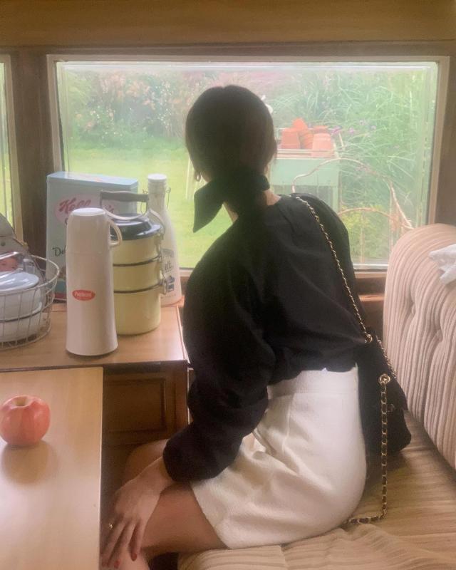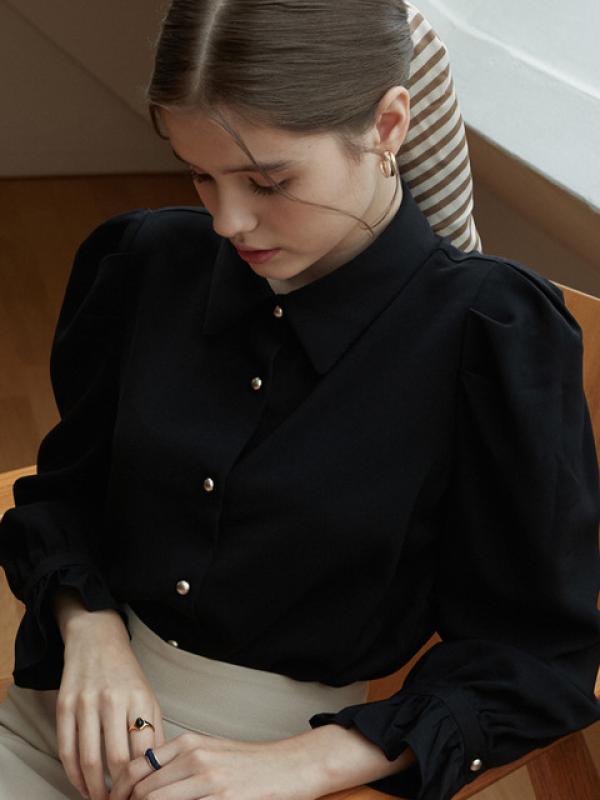 가을 담은 블랙 블라우스⠀