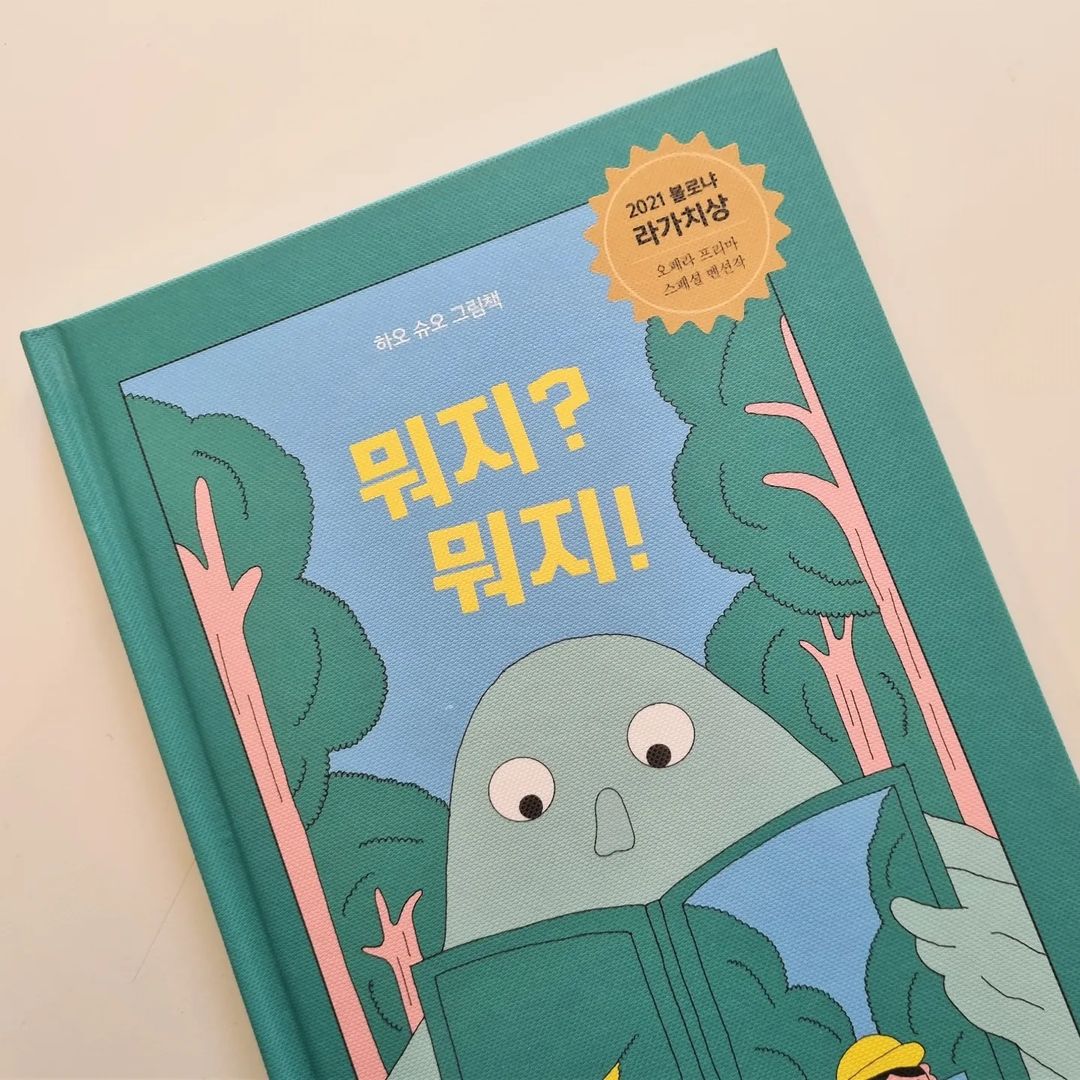 예쁜 색감과 함께 자유로운 상상에 푹 빠질 수 있는 북멘토 글 없는 그림책 뭐지? 뭐지! 💚