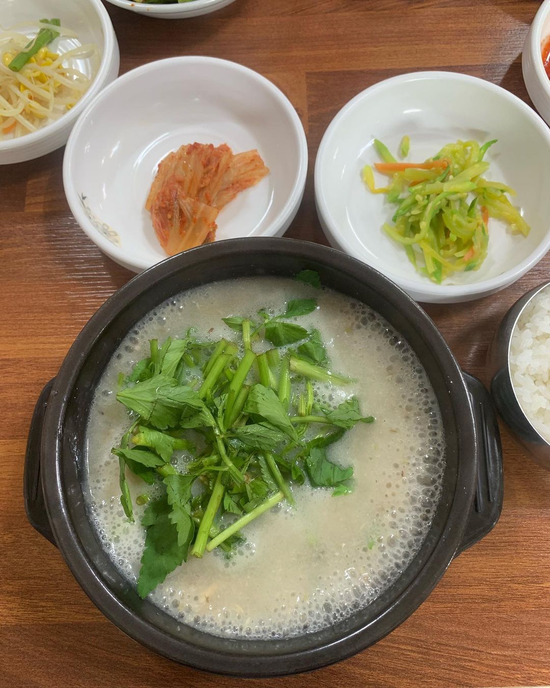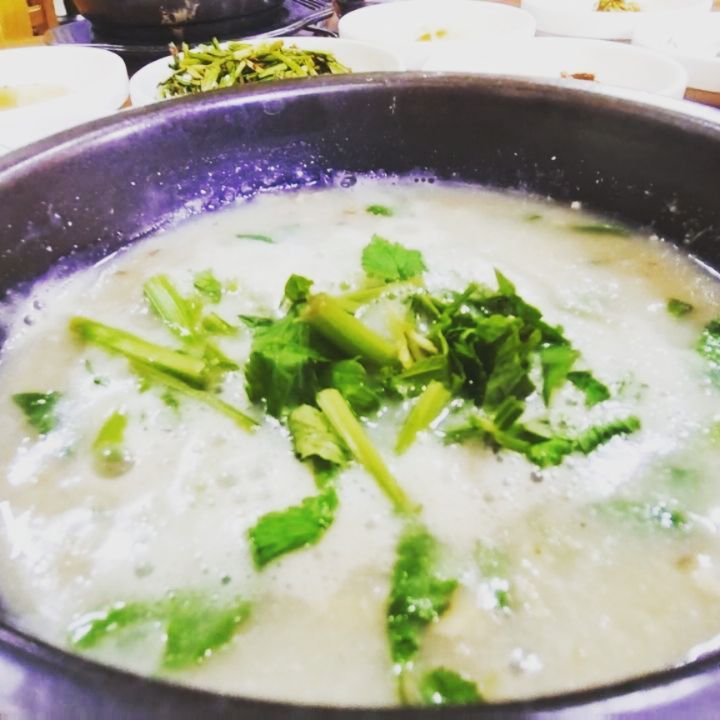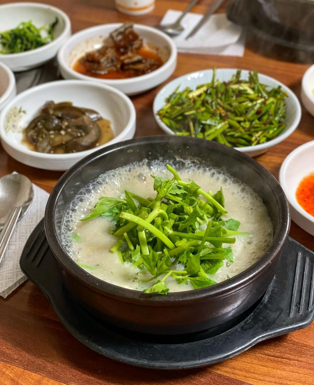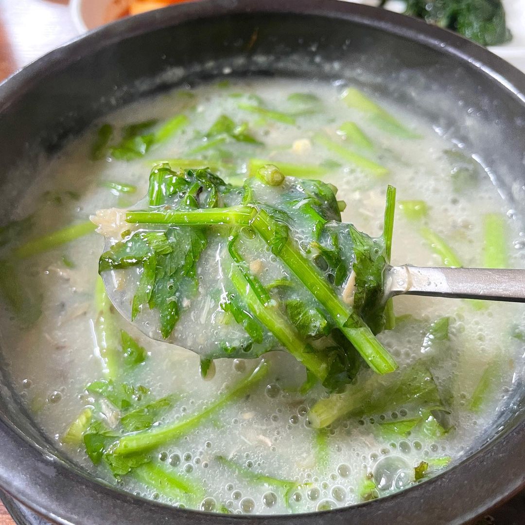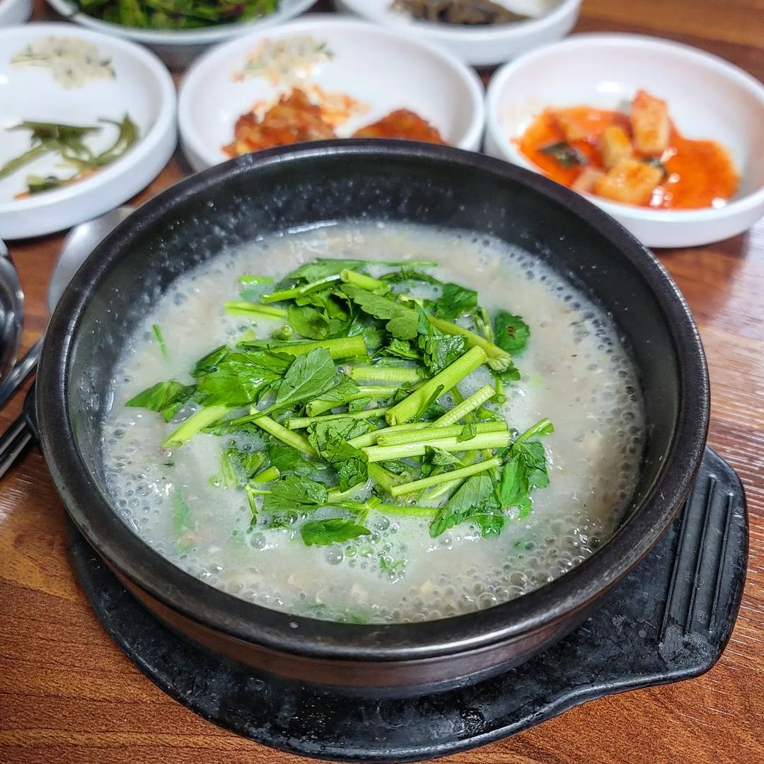 추어탕 같이 걸쭉한 식감이고, 미나리 한 움큼 올려서 한 뚝배기 나온다 🍲
