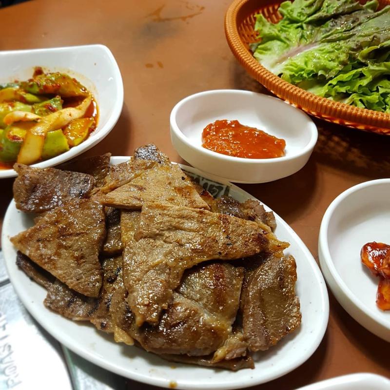 돼지구이백반 : 고기 양념이 딱 맛있어서 밥도둑&쌈도둑이다. 불맛은 덤.. 반찬도 계속 리필해주신다. 같이 나오는 부추, 마늘 장아찌와 먹으면 금상첨화!