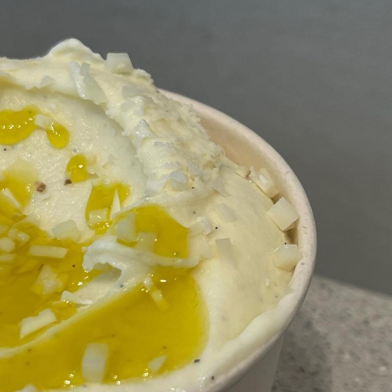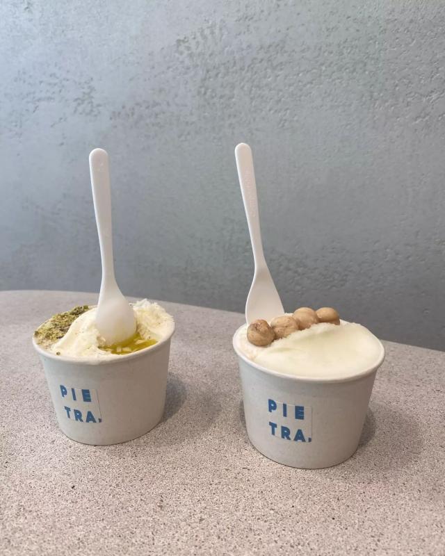 피에트라가 가지고 있는 특유의 밀도 있지만 크리미한 젤라또의 텍스쳐가 잘 묻어나는 메뉴라고 생각합니다. 올리브오일과 만체고 치즈가 곁들어져 더 깊은 풍미를 느낄 수 있습니다.
