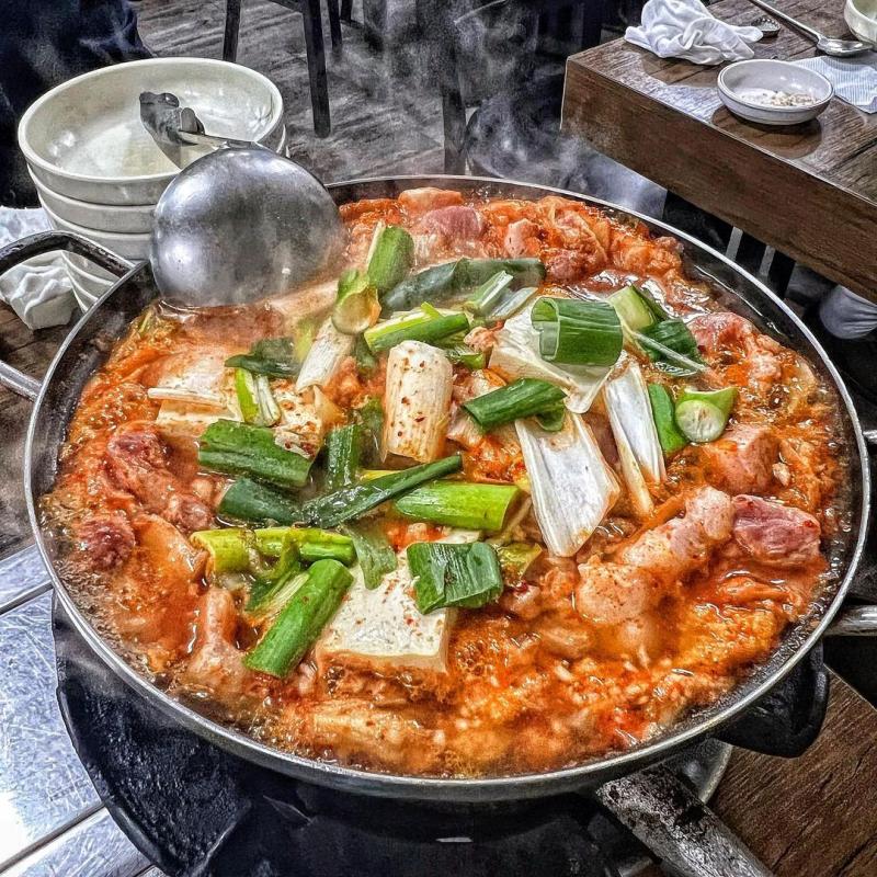 초벌없이 차가운 상태로 나오는 김치찌개.