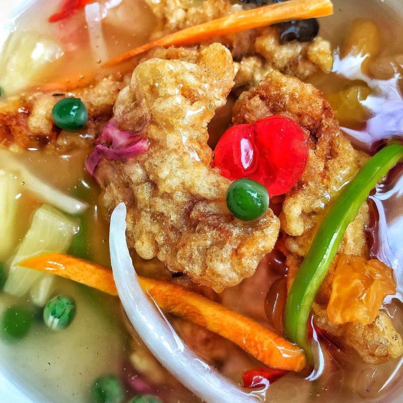 칵테일후르츠통조림을 넣은 탕수소스 찍어 간장 살짝 묻혀 먹으니 감칠한맛에 크리스피한 튀김옷 식감까지 한데 어우려져 맛이 극대화됩니다.